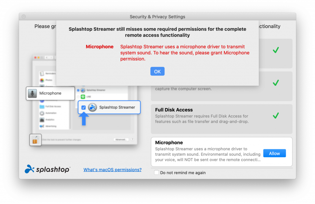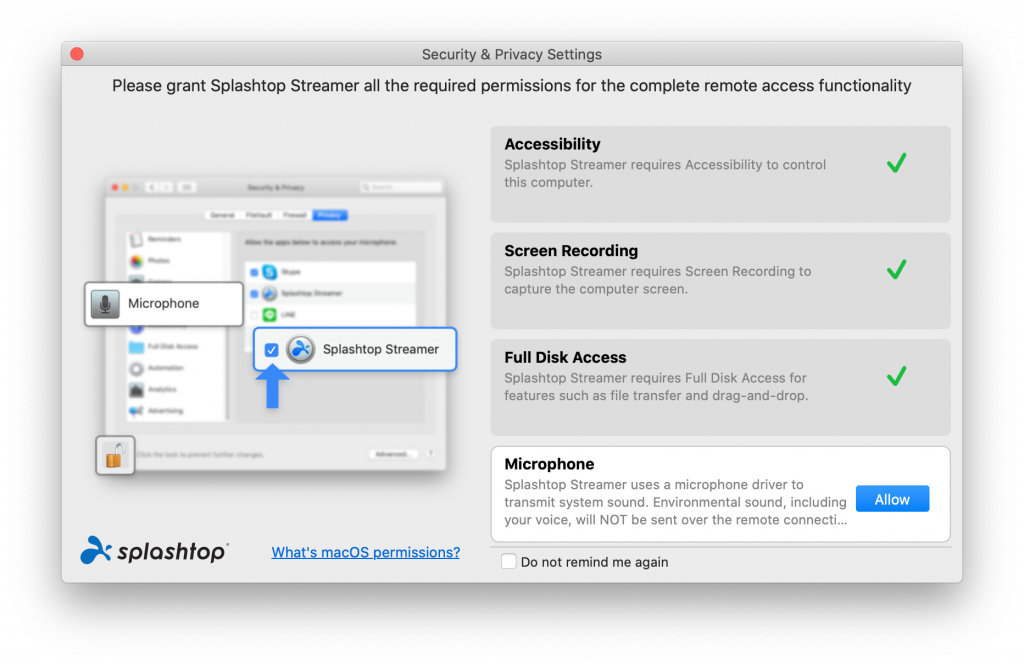 You may have seen a recent prompt asking to grant Microphone permissions to Splashtop. Splashtop is the remote desktop software used to let your IT Administrator connect to your computer wherever you are.