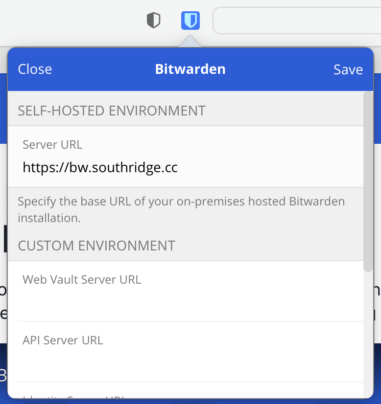 3. You will see a blue shield icon beside your search bar in Safari, click it, then the settings icon and enter https://bw.southridge.cc into the Server URL field.