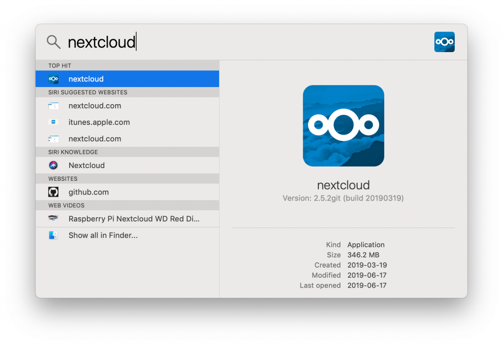 Now type in Nextcloud and hit enter when the nextcloud icon shows up.