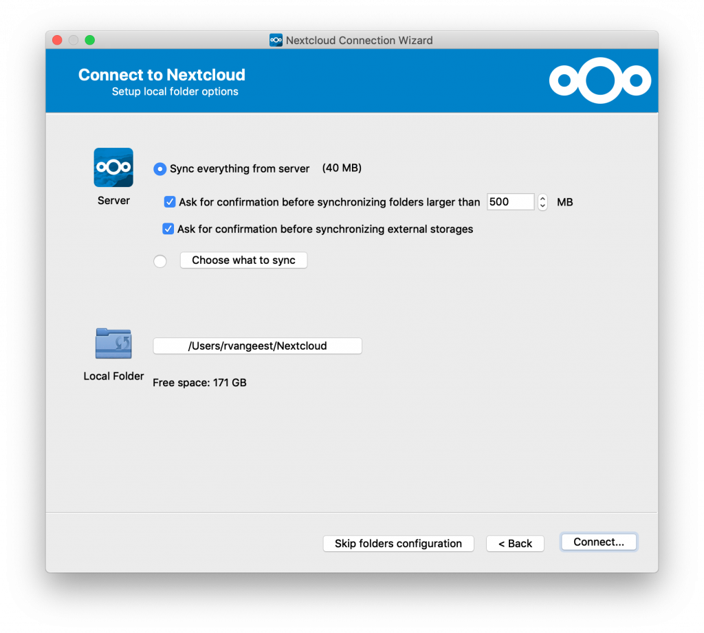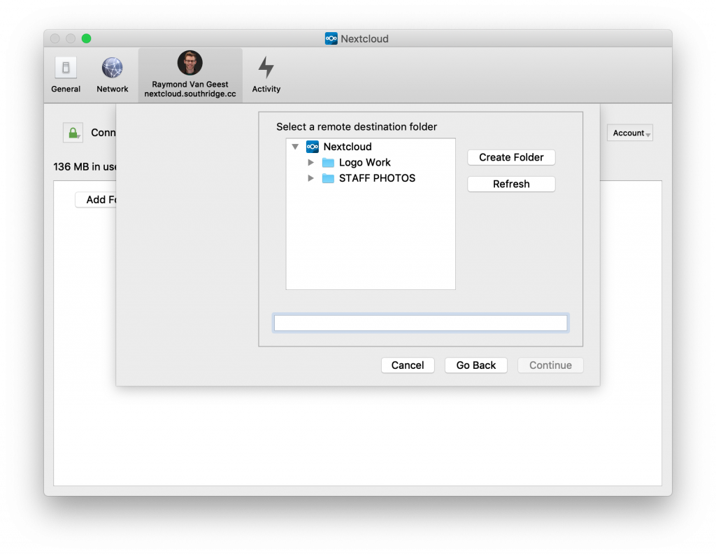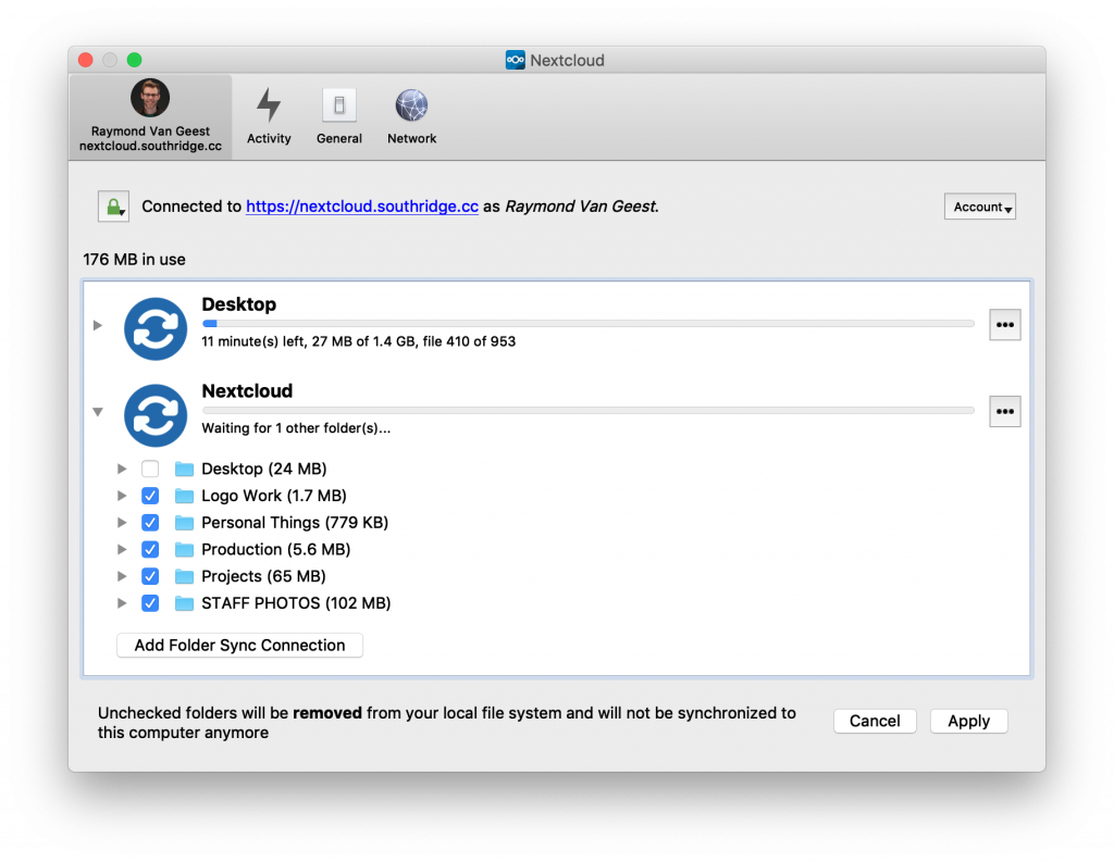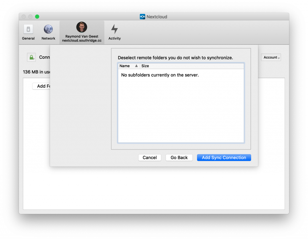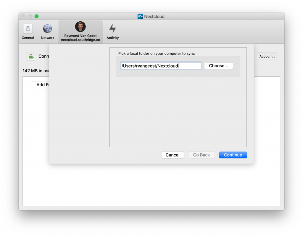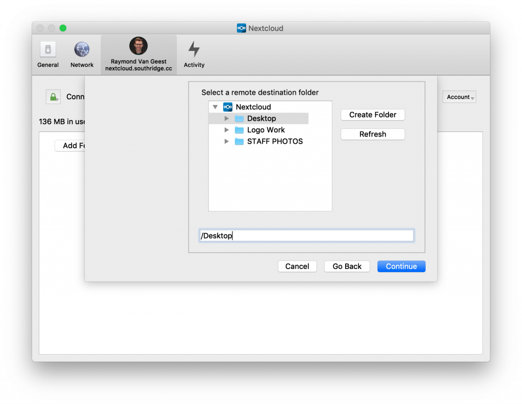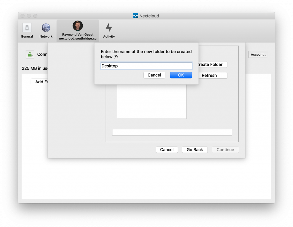 Ok, just a couple more steps so we don’t have your desktop files being synced to your Nextcloud folder.