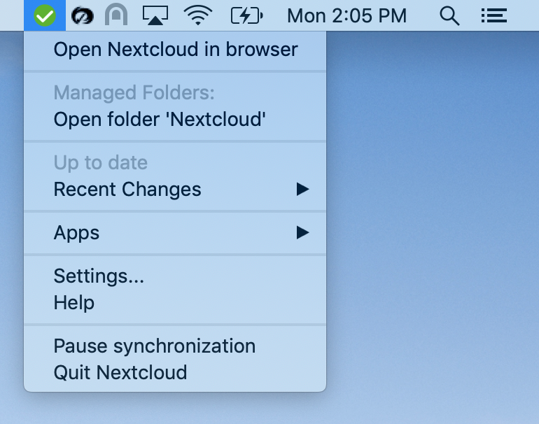 You’re done! Congratulations! Now any files you save in here will be kept sync’d back to your Nextcloud folder. If you don’t need to sync the files on your desktop you don’t need to keep reading.
