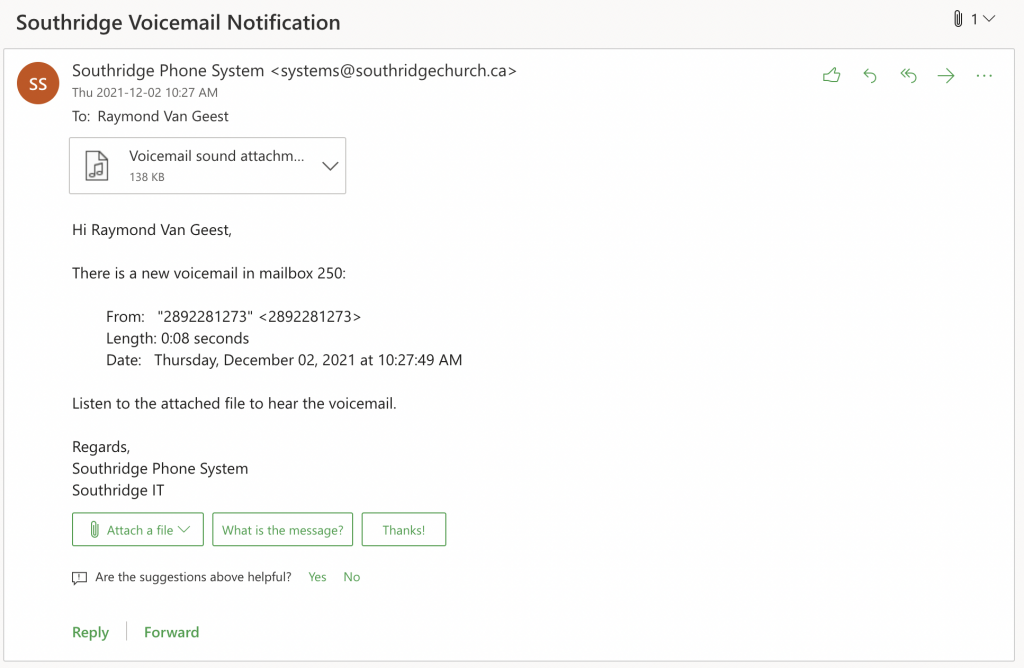 Here is an example of what an emailed voicemail will look like. These email notifications are legit and not spam!