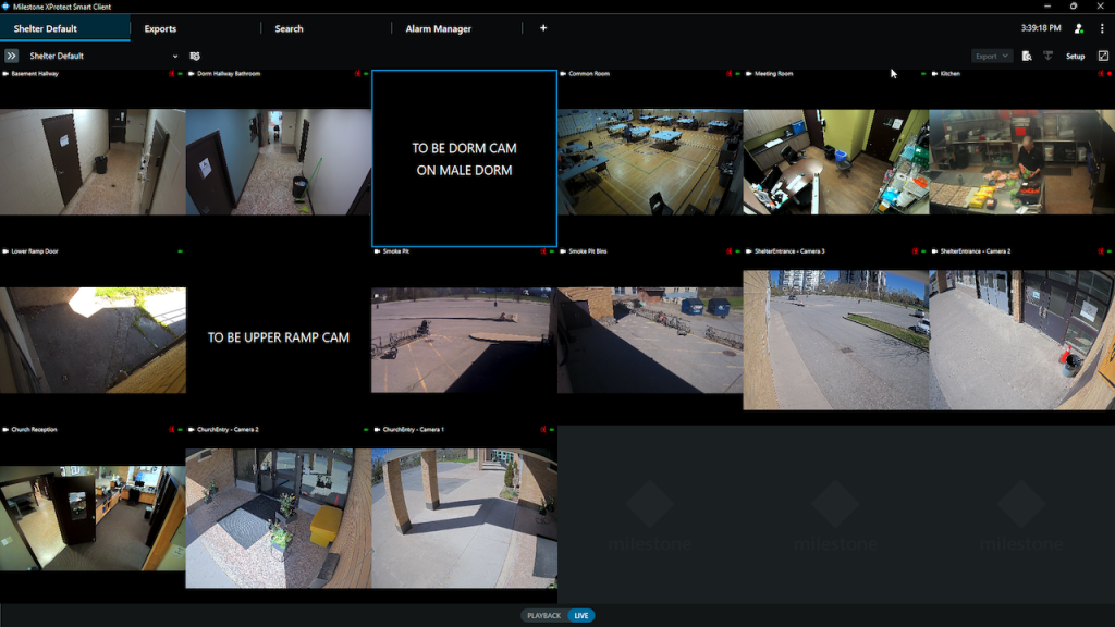 Milestone XProtect is our new security camera software. If you are at the Shelter Front Desk we have a dedicated machine for playing back footage. This article is dedicated to that software.
