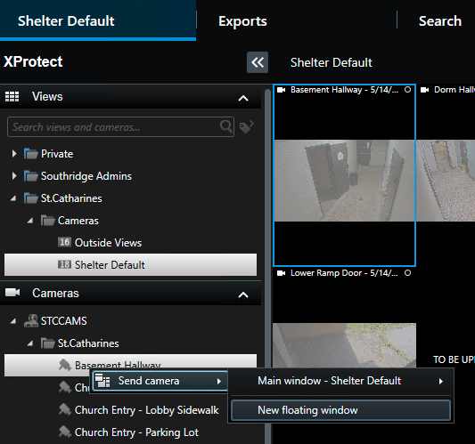 If you want to watch footage back of a particular camera… Open the pane on the left hand side of the client, from the Cameras section choose STCCAMS > St.Catharines. Right click on the camera you wish to use and select Send Camera to.. New Floating Window.